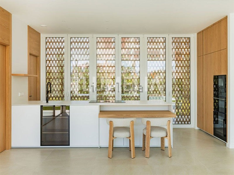 En cuanto a equipamiento, la villa cuenta con aire acondicionado frío/calor centralizado, suelo radiante mediante aerotermia, persianas automáticas, cristales de seguridad y ventilación mecánica. La vivienda está equipada con placas fotovoltaicas, aislante exterior mediante sistema SATE y puerta blindada. El parking cubierto, el trastero y los armarios empotrados refuerzan la funcionalidad del inmueble. La cocina abierta, completamente equipada, junto al lavadero independiente, aportan practicidad sin sacrificar diseño. Cada detalle ha sido cuidadosamente seleccionado para garantizar eficiencia energética y un confort excepcional durante todo el año.